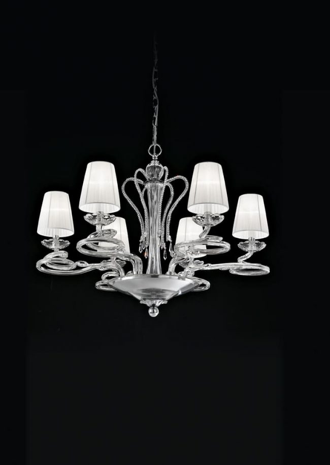 Chandelier with shade, glass arms L38 H 34 SP 16 2 E14 28 W ES Dec cromo