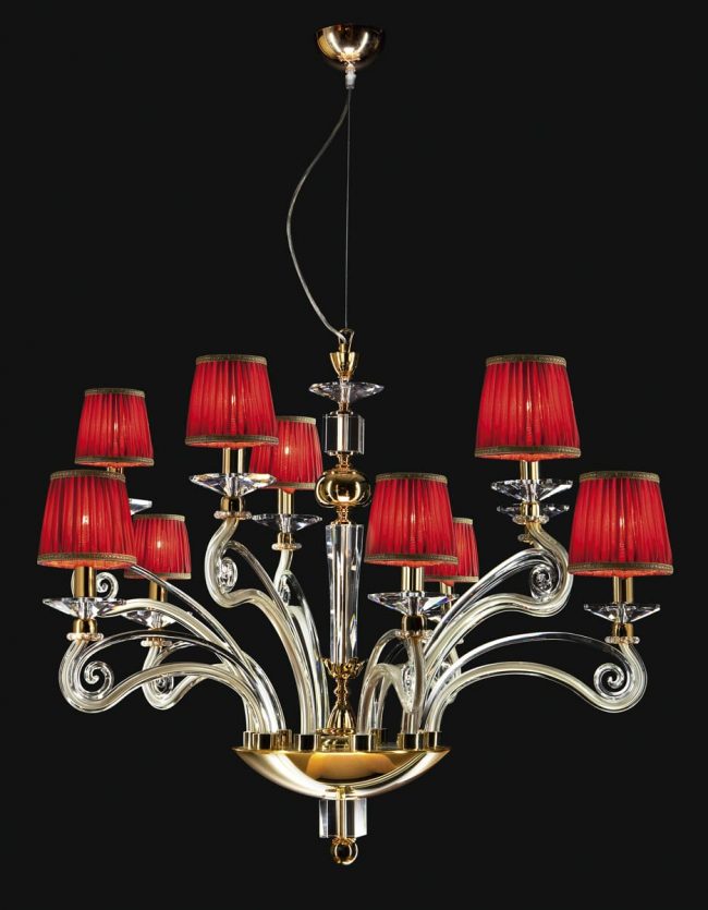chandelier with shades and champagne glass arms Ø85 h 70 cm 10 E14 42 W ES Dec oz